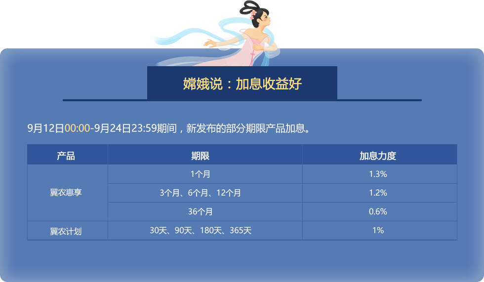 2、本活动中的指定产品均为:翼农计划30天及以上、翼农惠享1个月及以上;凡符合活动要求的余额复投、自动续投资金,也计入活动范围内。